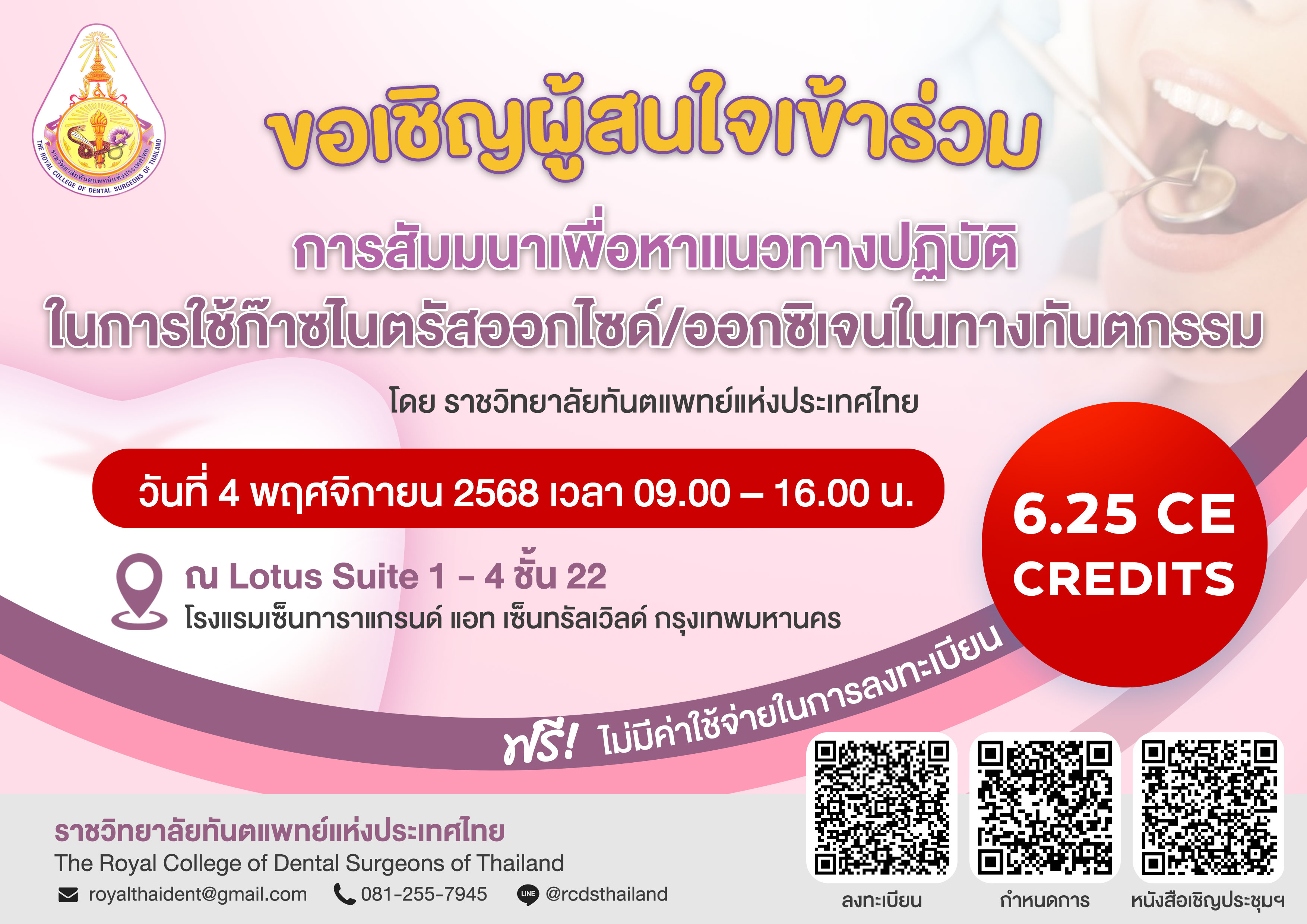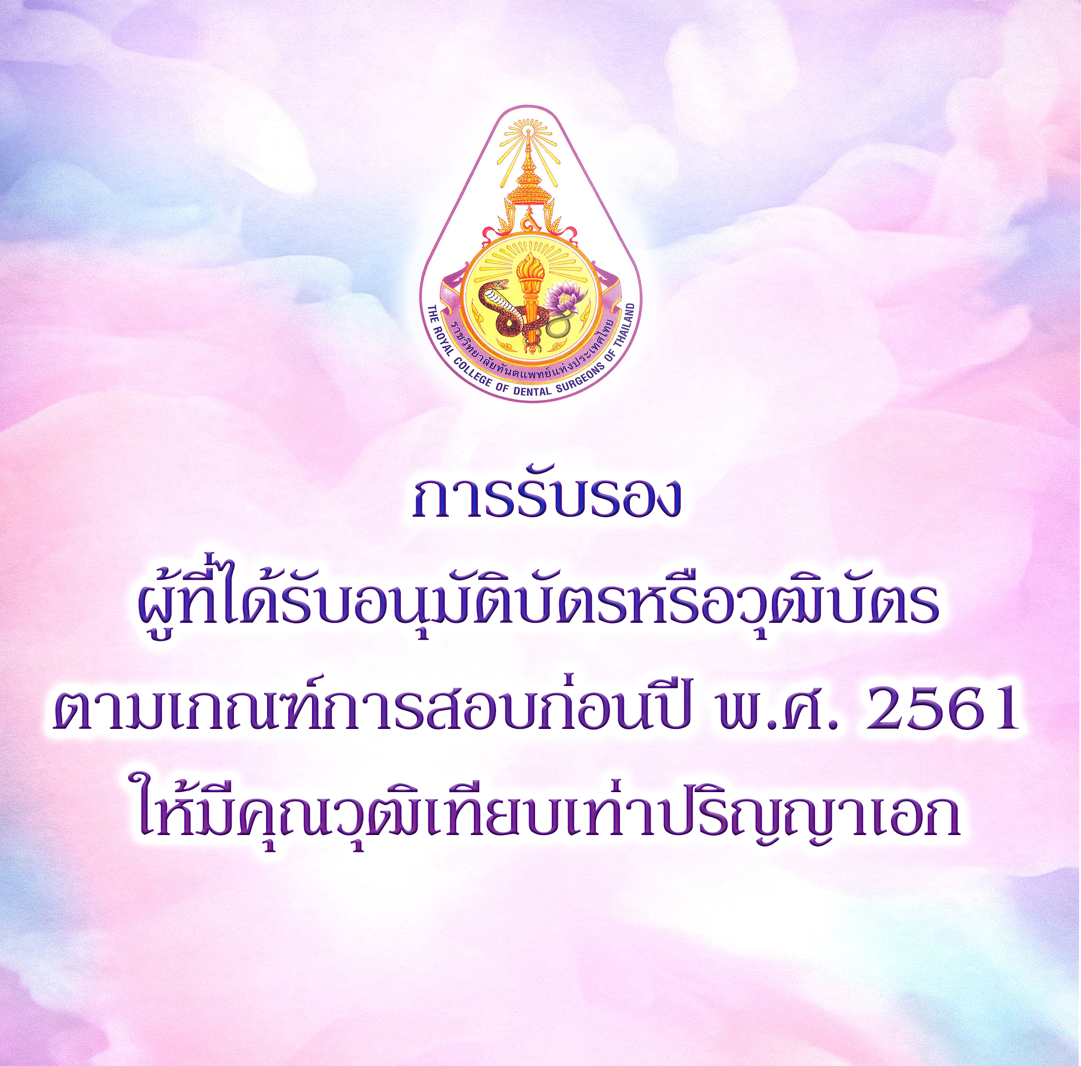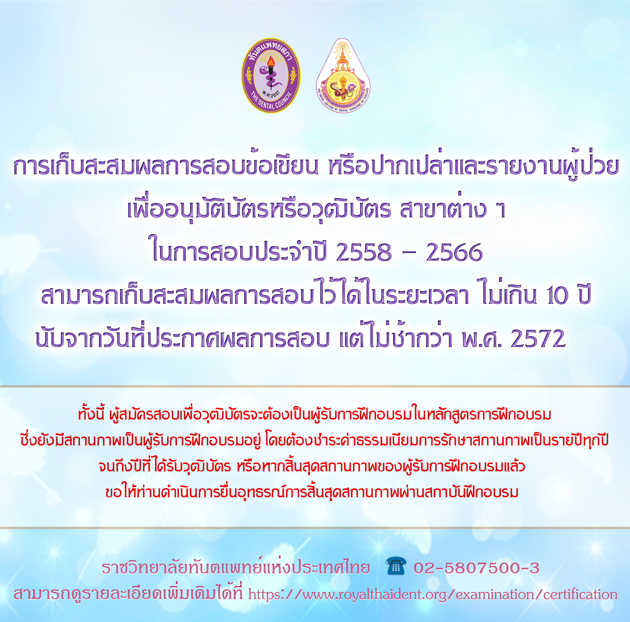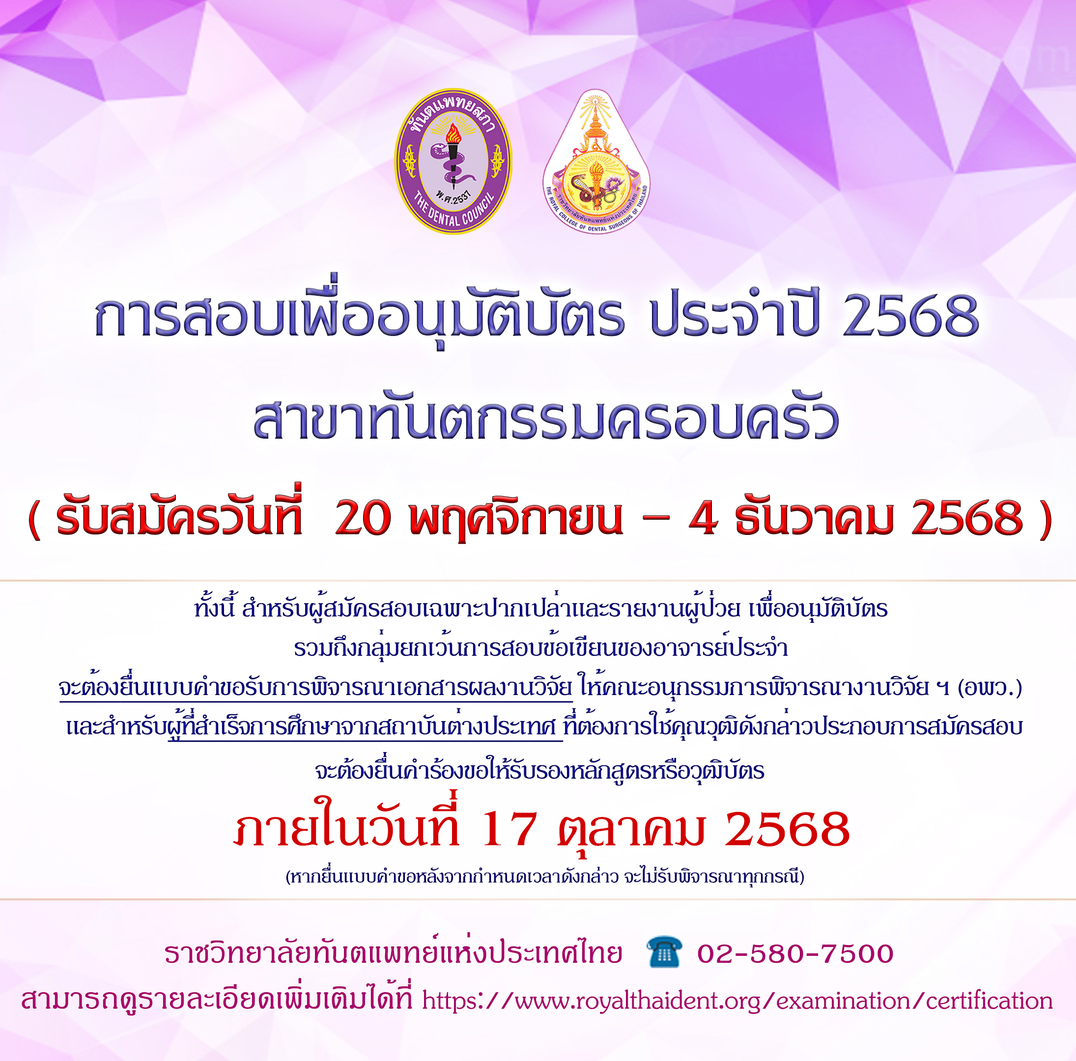 ประกาศฯ เรื่อง รายชื่อผู้มีสิทธิสอบเพื่ออนุมัติบัตรหรือวุฒิบัตร ประจำปี 2568 สาขาทันตกรรมบดเคี้ยวและความเจ็บปวดช่องปากใบหน้า