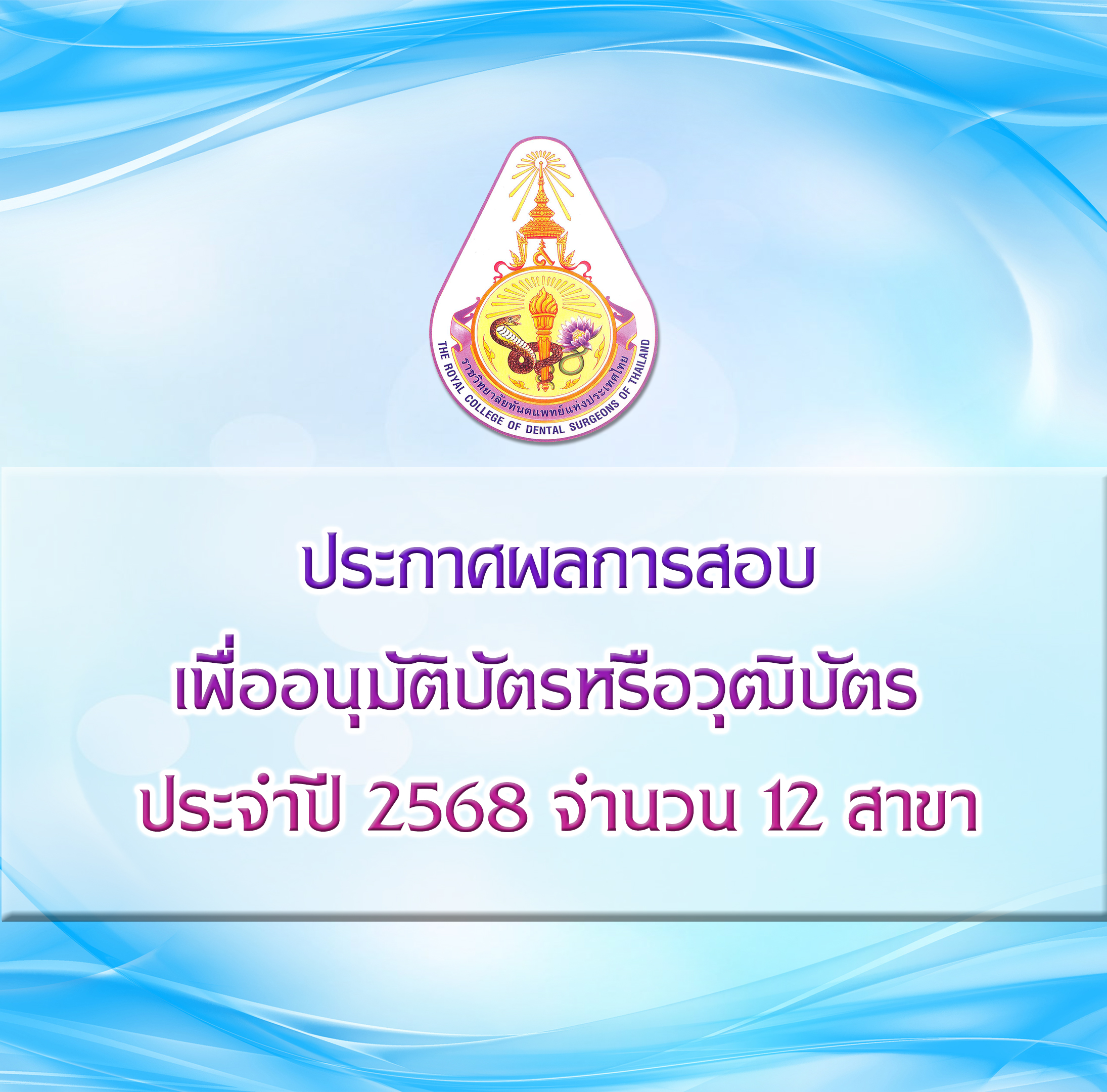 ประกาศฯ เรื่อง ผลการสอบคัดเลือกผู้เข้ารับการฝึกอบรมเพื่อวุฒิบัตรของทันตแพทยสภา ประจำปีการศึกษา 2568 รอบที่ 2