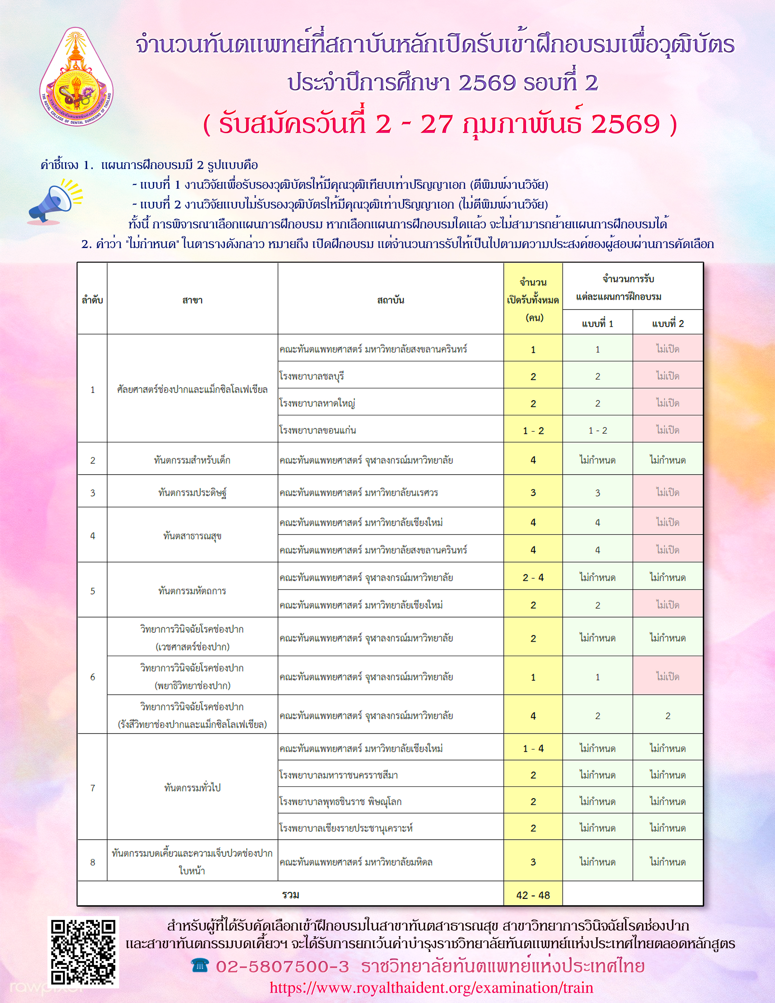ประกาศฯ เรื่อง รายชื่อผู้มีสิทธิสอบเข้ารับการฝึกอบรมเพื่อวุฒิบัตรของทันตแพทยสภา ประจำปีการศึกษา 2569
